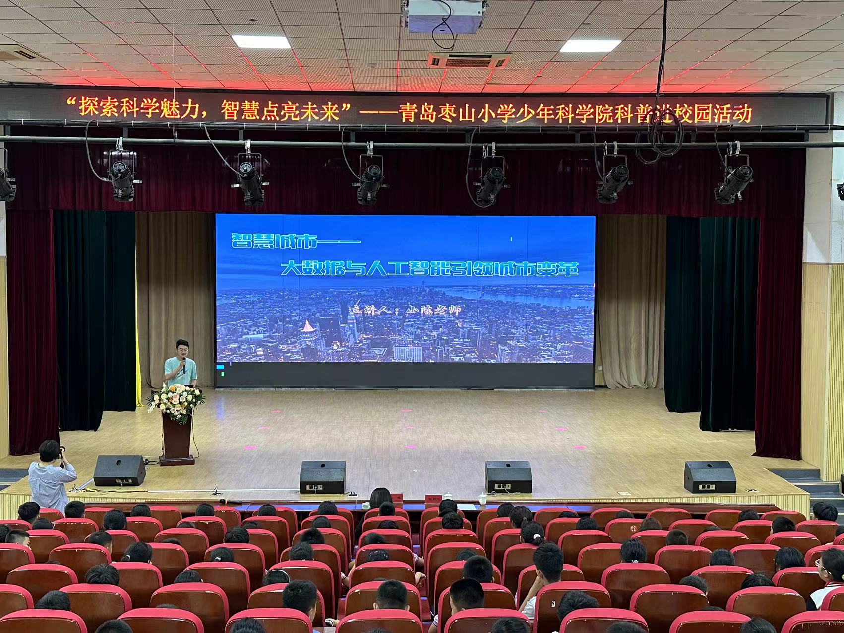 6月4日下午,beat365研究生党支部“数智先锋讲师团”走进青岛市枣山小学少年科学院,开展“探索科学魅力,智慧点亮未来”主题活动,讲师团成员2022研究生陈鹏运为在场的师生带来了别开生面的《智慧城市》主题科普讲座。