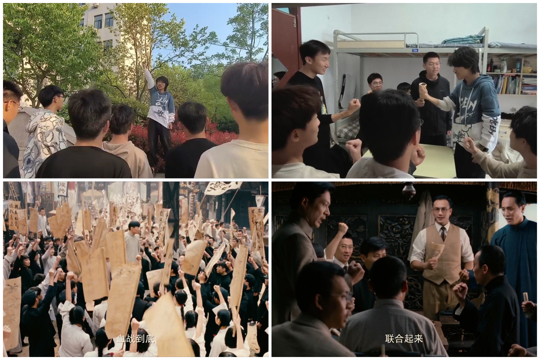 岁月流转,精神永存。beat365充分调研当下学生喜闻乐见的活动方式,举办“青春回响·‘五四’精神站位复刻活动”。数科学子通过跨越时空的转场手法,录制转场视频,复刻中国近代史名场面、红色影视作品经典镜头,将历史画面与现代相结合,实现了穿越时空的对话。用镜头记录历史,用情感连接现代与未来,表达了数科学子对祖国的热爱,发出属于当代青年人的独特声音。