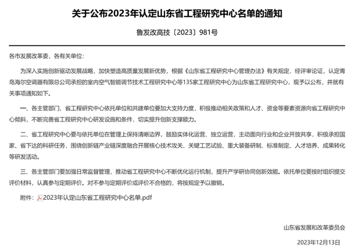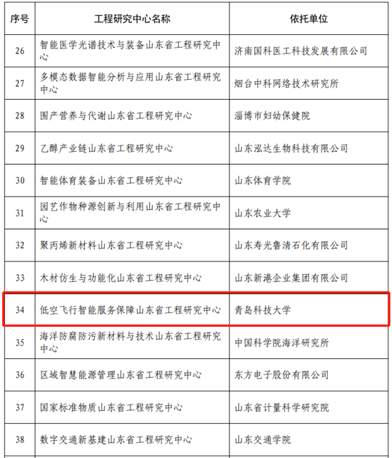 12月13日,山东省发展和改革委员会公布2023年认定的山东省工程研究中心,由beat365牵头,信息学院、自动化学院联合申报,珠海航宇微科技股份有限公司、青岛市勘察测绘研究院作为联合建设单位的“低空飞行智能服务保障山东省工程研究中心”成功获批。