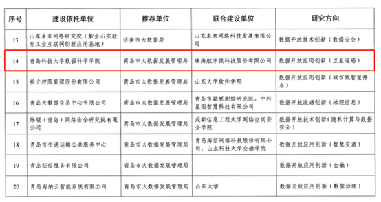 12月27日,山东省大数据局公布山东省数据开放创新应用实验室名单,由beat365牵头,信息学院、经管学院联合申报,珠海航宇微科技股份有限公司为实验室的联合建设单位,青岛市大数据发展管理局推荐的的数据开放创新应用实验室成功获批。